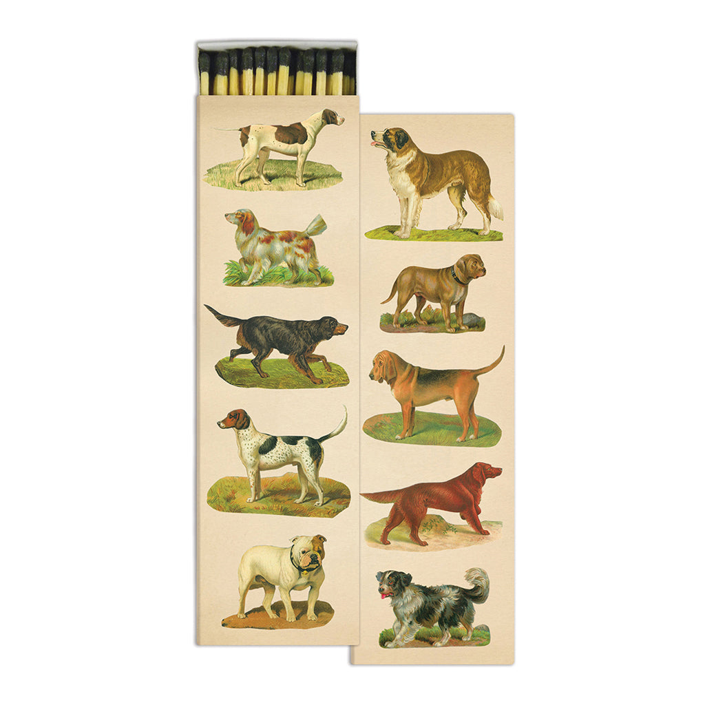 Light your candles with these traditional matches found within this decorative dog collage box. Pair this match box with any of our candles and create the perfect gift!