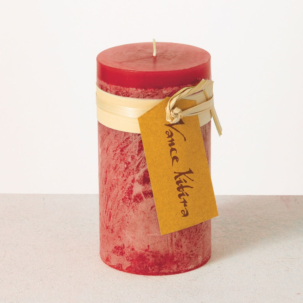 Add an accent of color and light to your home decor with this small Vance Kitira timber pillar candle. This pillar candle has a 4 inch diameter and stands 8 inches tall. Its small size makes it perfect for end tables, coffee tables or mantels. Add one or many and choose from the wide variety of colors available.