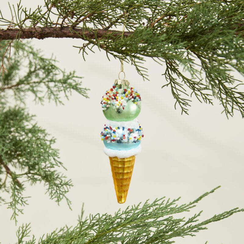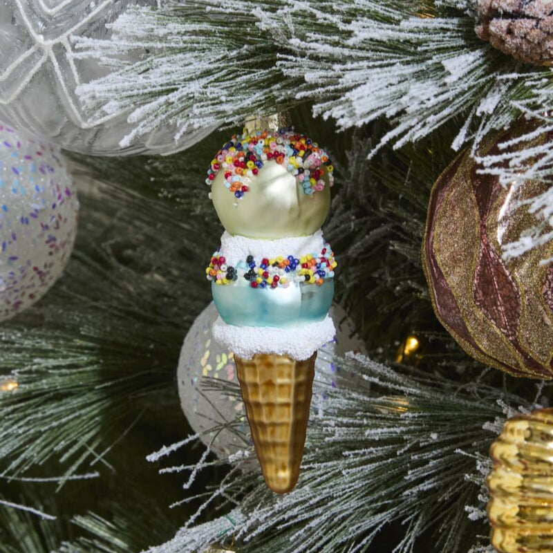 Add a sprinkle of whimsy to your holiday decor with this Glass Ice Cream Cone Ornament. Delicately crafted to capture the charm of a classic ice cream cone, it adds a playful touch to any tree or display. Perfect for those who love to mix a little fun into their seasonal traditions!
