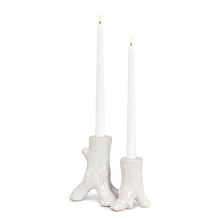 Enhance your home decor with our Tree Trunk Taper Candle Holder. Made of ceramic, this rustic and charming piece provides a sturdy base for taper candles. Add a cozy and inviting atmosphere to your living space by displaying it on a mantel or dining table. Available in two sizes, sold individually.