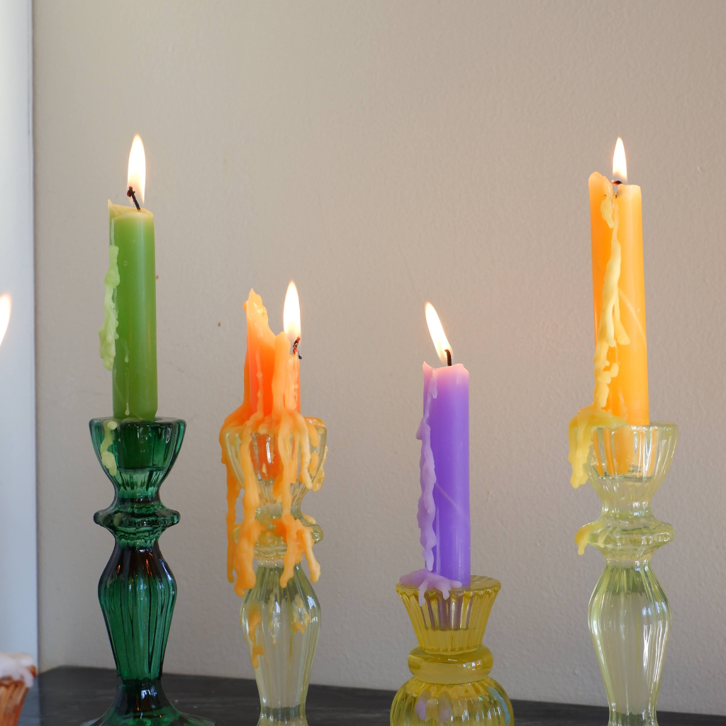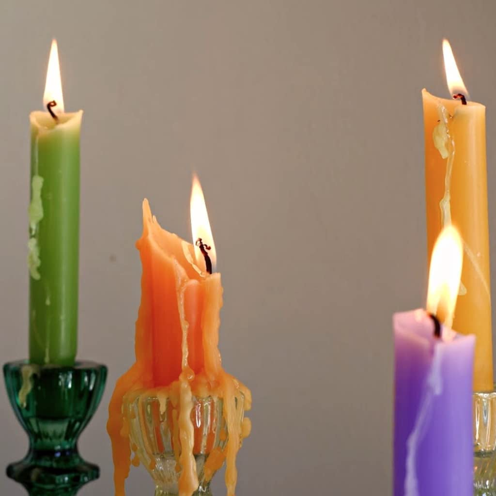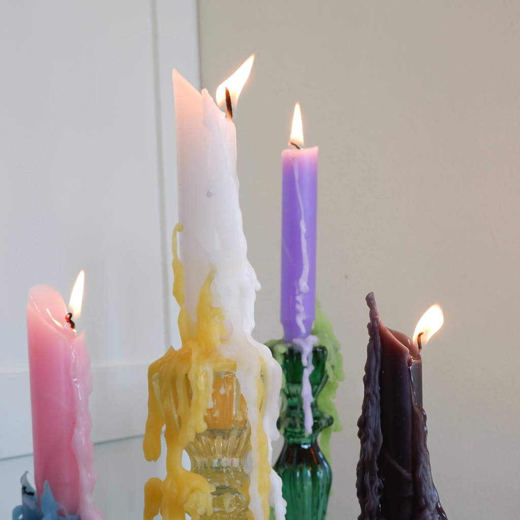 Colors Available: Ivory drip candles, white drip candles, black drip candles, turquoise drip candles, pink drip candles, purple drip candles, green drip candles, orange drip candles, yellow drip candles, red drip candles