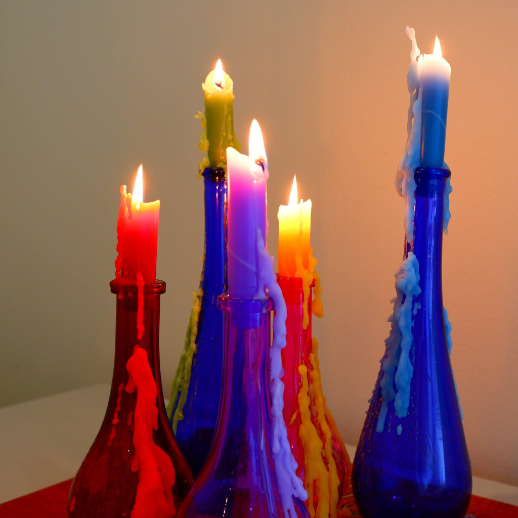 These candles are designed to burn faster than traditional taper candles and create a stunning waterfall of wax drips. These drip candles are customized to fit perfectly in a wine bottle and come in an array of colors, including ivory, white, black, turquoise, pink, purple, blue, green, orange, yellow and red. They make the perfect addition to any special occasion or just to add some extra ambiance to your home. Shop now and enjoy the beauty of our colorful drip candles!
