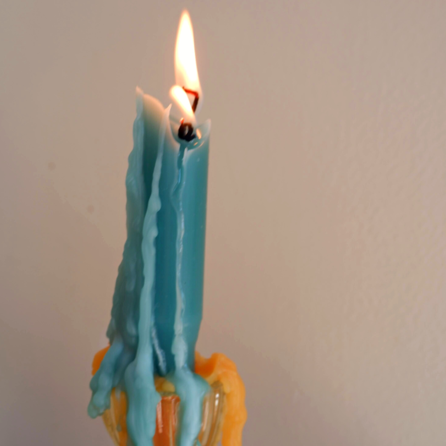 Since 1970, our iconic "drip mountain" has been a beloved part of our store in Woodstock, NY. Standing 8 feet tall and 4 feet wide, it's a sight to behold! Now you can bring the same beauty to your own home with our new line of drip candles, customized by us!