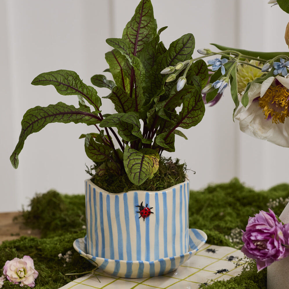 Blue and White Striped Ladybug Planter