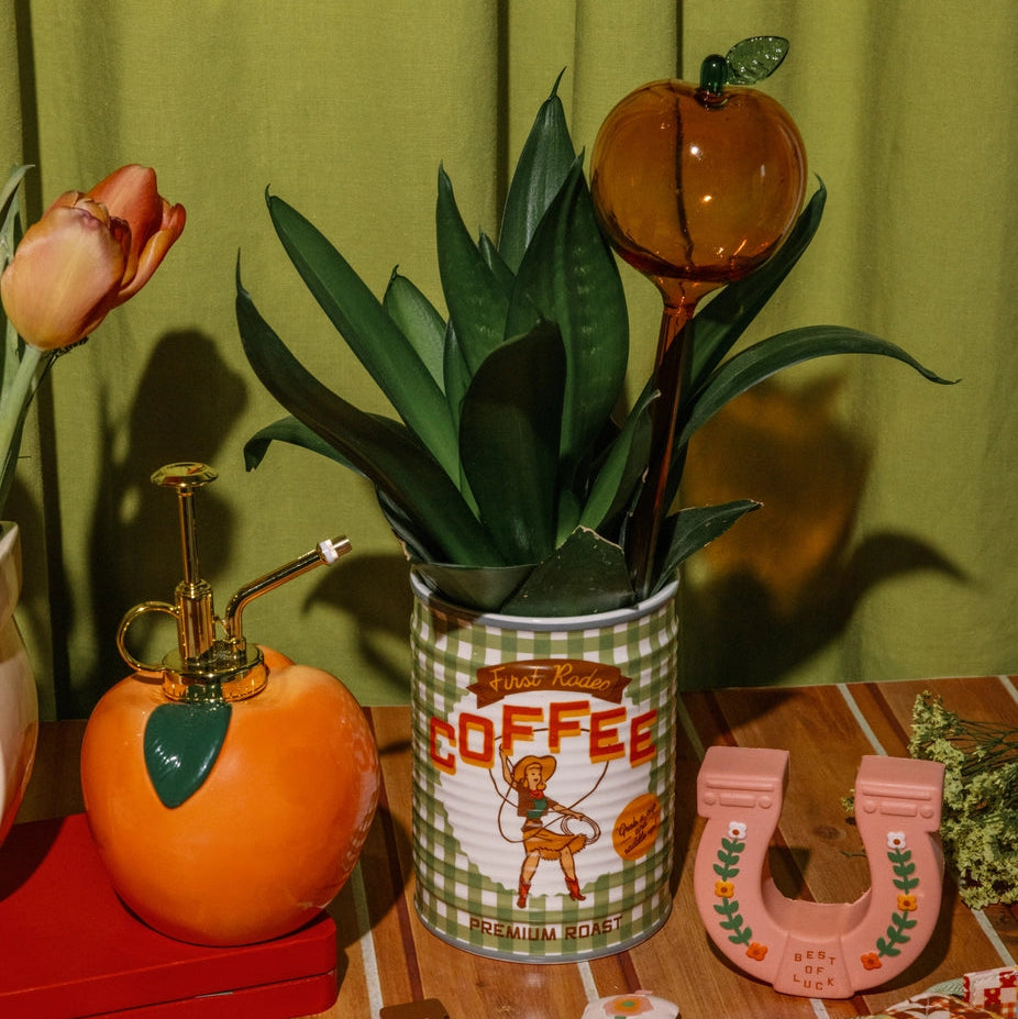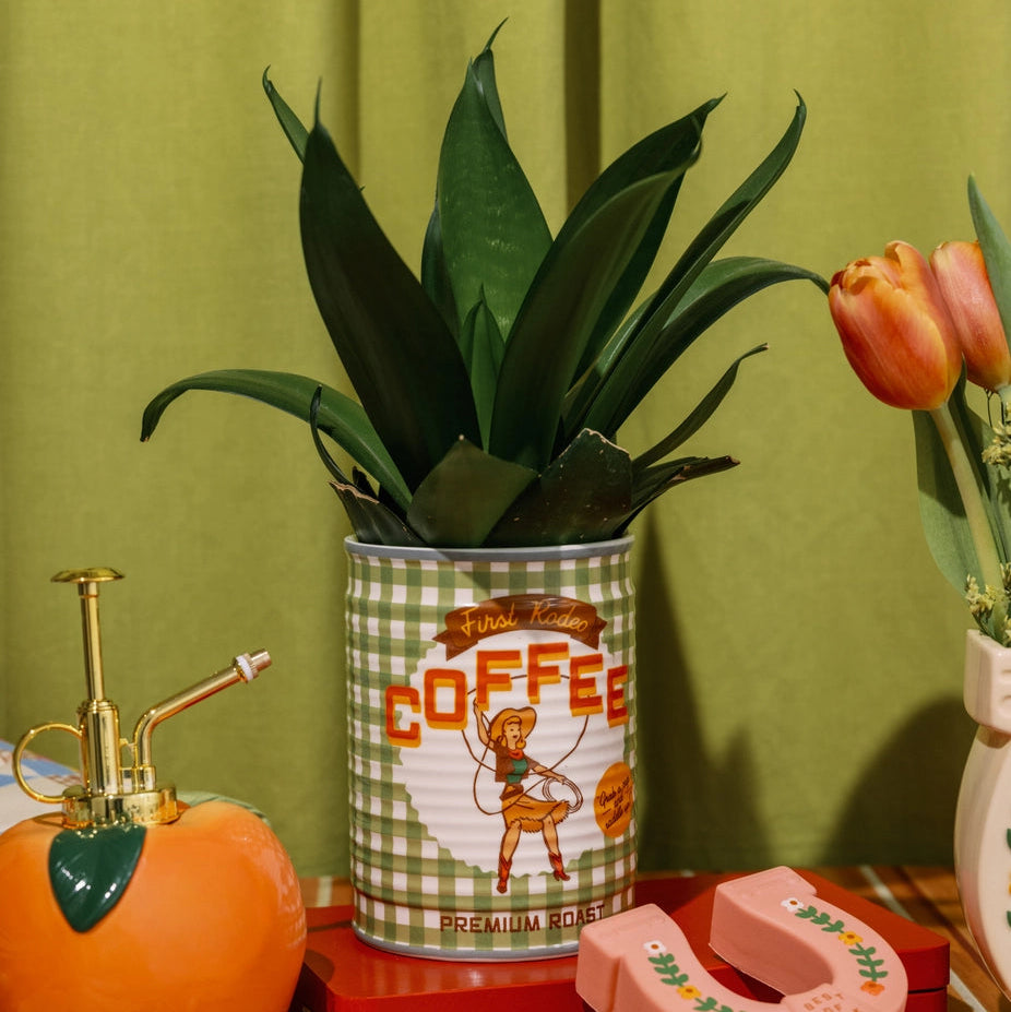 Saddle up for a planter that's got serious charm! This ceramic coffee can lookalike is your new favorite desk buddy—quirky enough to turn heads, practical enough to earn its spot anywhere. Toss in a trailing succulent, corral your pens, or stash kitchen utensils inside. With its vintage-inspired design and compact size, it's the kind of piece that makes people smile and ask where you found it. Perfect for plant parents and desk decorators who refuse to choose between style and function.
