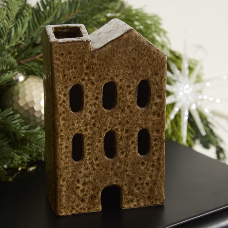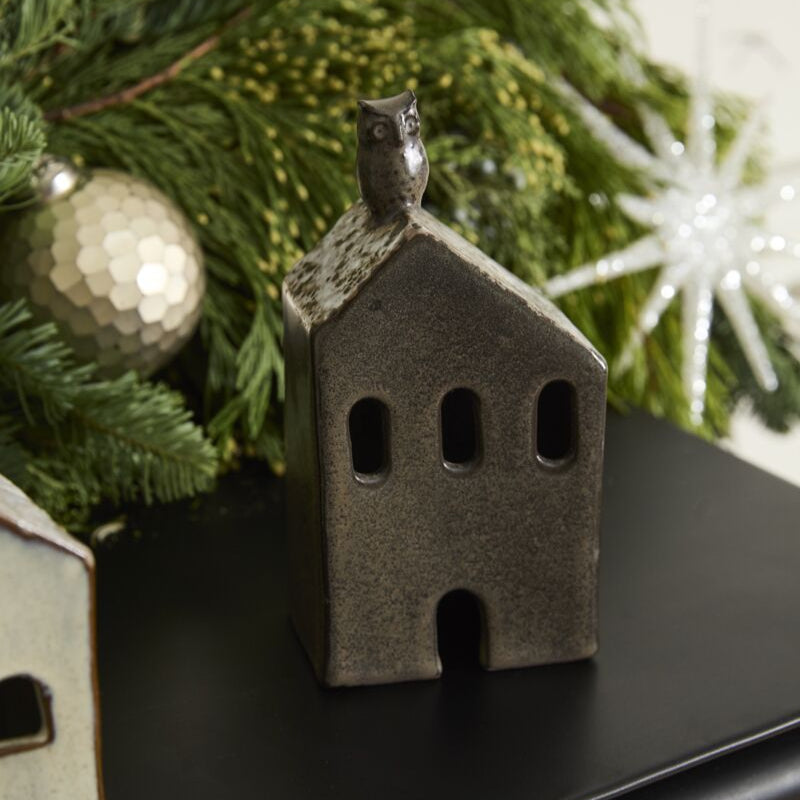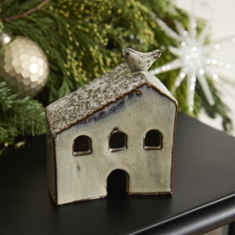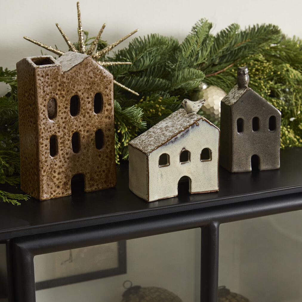 Create festive holiday moments with the Village House Collection, a delightful set of ceramic houses dusted with snow and detailed with cut-out windows and doors. Each hand-painted house glows with a warm reactive glaze and boasts a chimney perched on the snow-covered roof. Combine several Village Houses with Village Trees to craft a charming winter display full of holiday cheer.