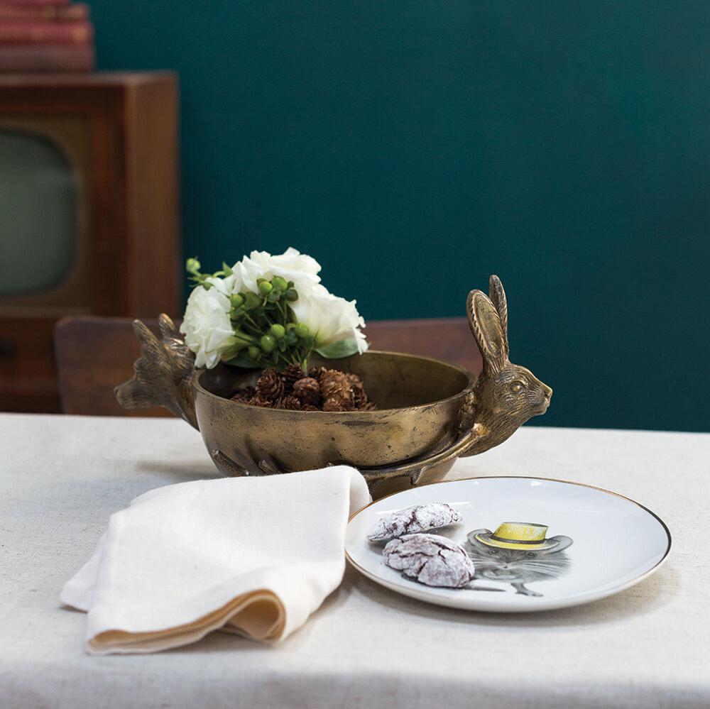Introducing Eric The Rabbit & Eloise The Fox Bowl - a versatile and charming addition to your holiday collection! With a stunning matte brass finish and intricate detail, this classic bowl with a twist is sure to bring a playful touch to any design.