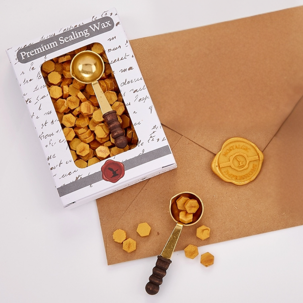 Sealing Wax Beads come in a 2 oz. package accompanied by a spoon, perfect for melting wax over a flame to create single impressions. This wax is user-friendly, tidy, cost-effective, and fully flexible and suitable for mailing. The spoon is designed to hold just the right amount of wax for one impression at a time. Each 2 oz. pack yields about 85 impressions.