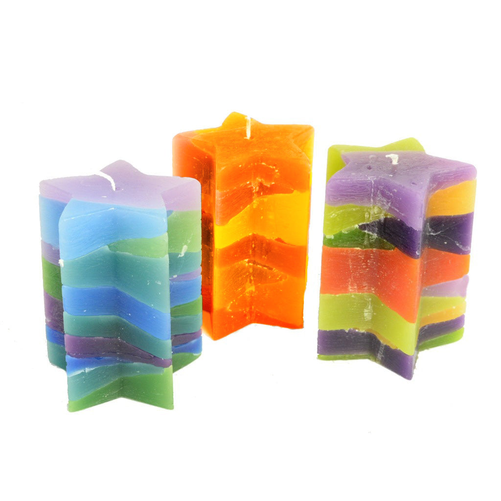 Let these stunning hand poured layer candles add a pop of vibrant color, light and warmth to your home décor. Each handmade layered star pillar candle is created with layers of beautiful colors. These unique candles are perfect as a funky gift.