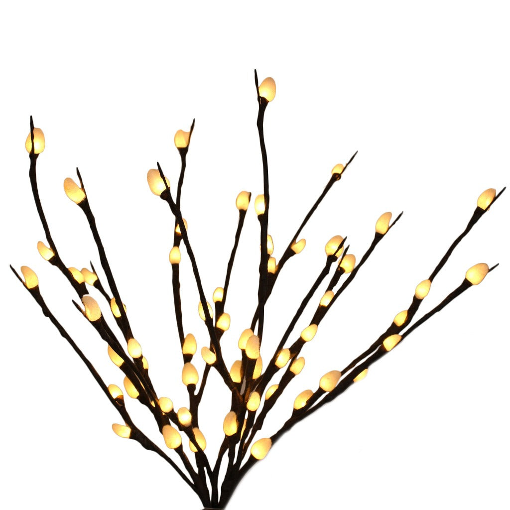 Add an enchanting woodland glow to any bedroom, book self, reading nook or living room with these pussy willow branch LED lights. Each bendable, movable branch is topped with small life like pussy willows that glow amber when turned on.
