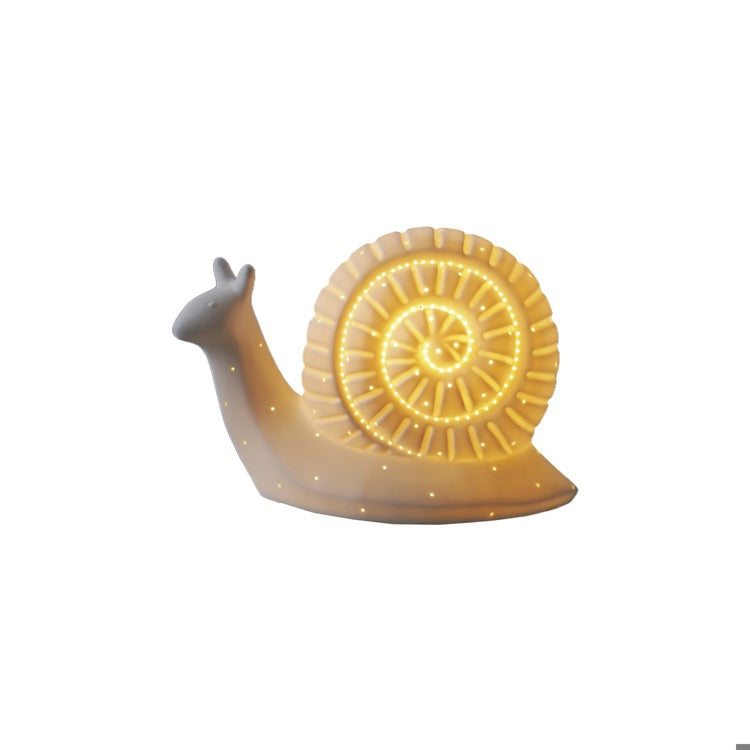 Illuminate your space in style with the Stoneware Snail Lamp. Crafted from durable stoneware, this charming lamp is the perfect size for a bedside table or living room accent. The intricate detailing on the snail's shell adds a unique and artistic flair, while providing a warm, cozy glow to any room. A whimsical addition to your home decor.