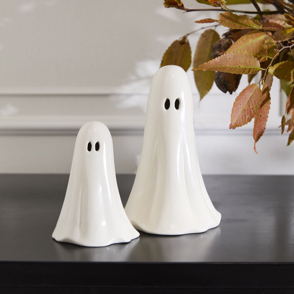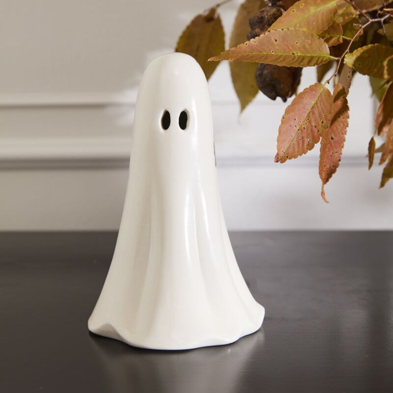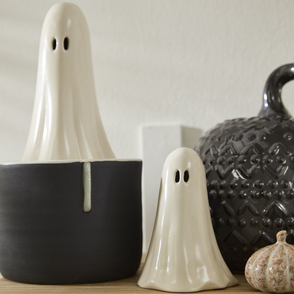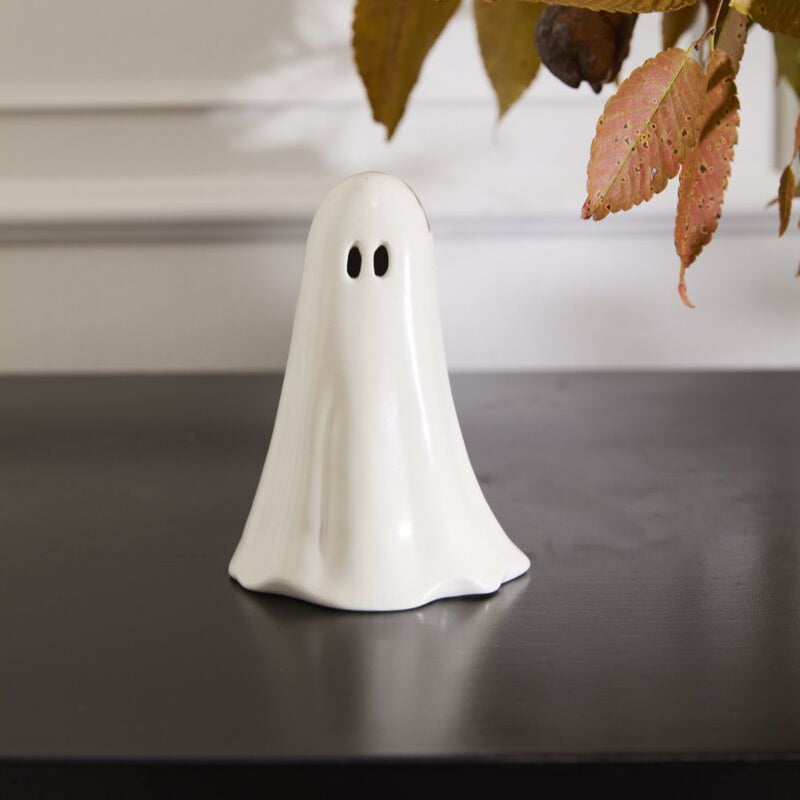 Add a touch of festive charm with this cheerful Ceramic Ghost Figurine. Hand-painted with open oval eyes and a hollow base, it pairs perfectly with a tealight to cast a gentle glow. Ideal for layering on shelves or tables, these versatile ghosts create a playful, inviting Halloween atmosphere that’s spooky but not scary. Sold separately.
