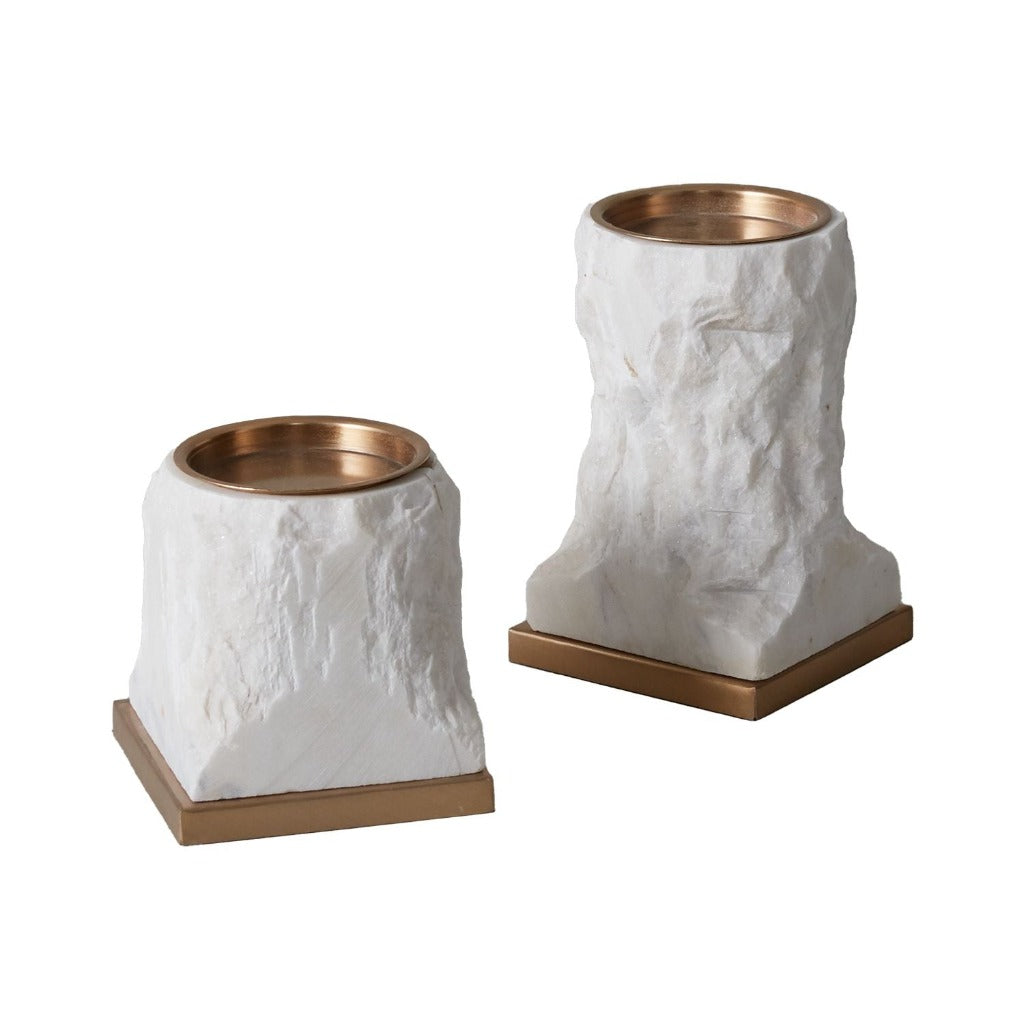 The Plymouth Candleholder is a stunning natural stone candleholder with brass accents, it’s a statement piece designed to hold a pillar candle. Hand-crafted of stone and iron, each item will vary slightly in shape and color due to the natural qualities of the materials.