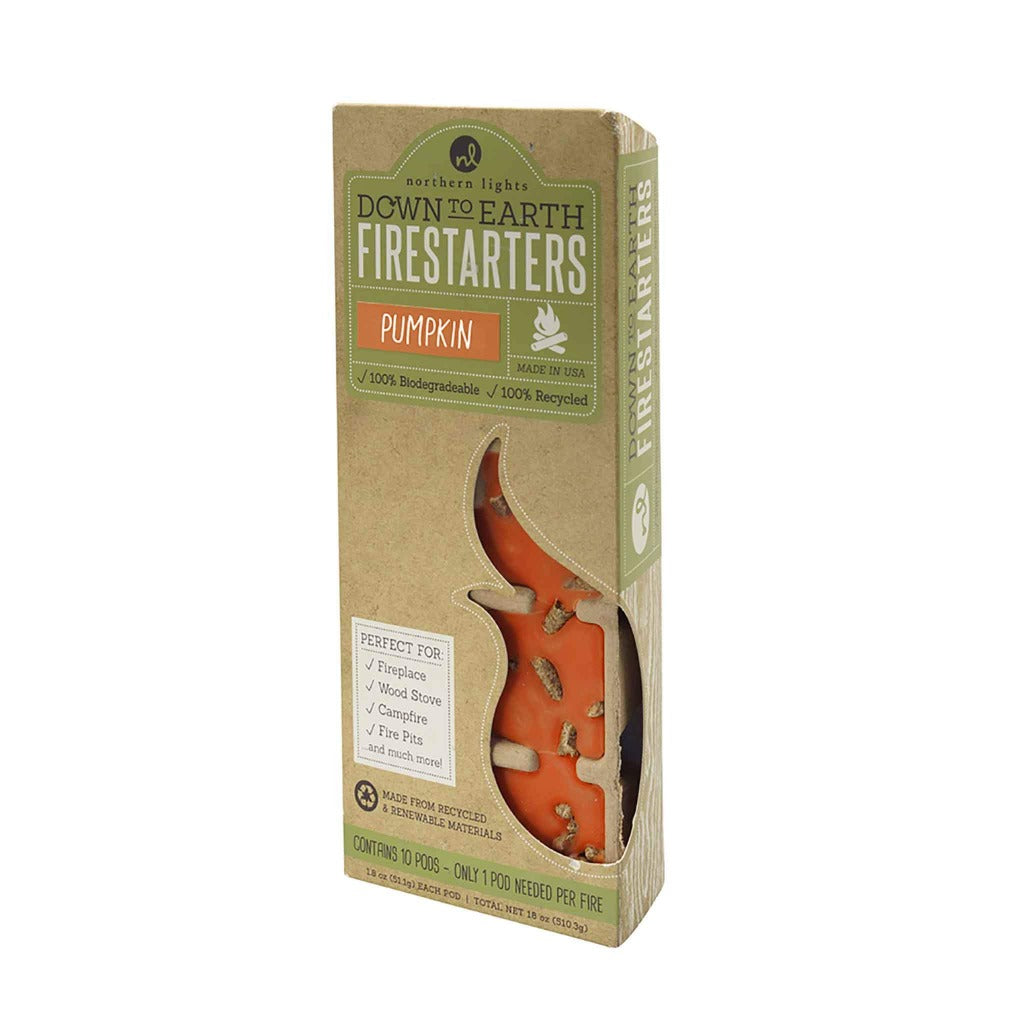 These fire starters are not your traditional pieces of wood. Each one is infused with a unique scent that will not only give your fire a kick start, it will fill your home with a wonderful aroma. Just simply place one of the ten pods under your logs and light it. Perfect for wood stoves, camp fires, fire places and more!