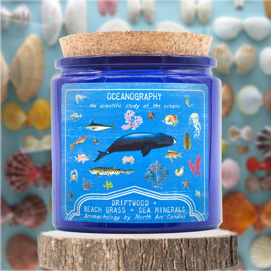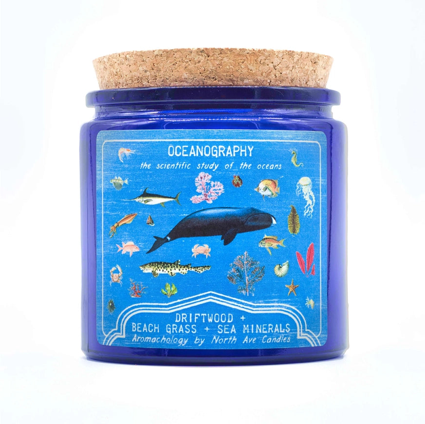 Discover the wonders of the sea with Oceanography Driftwood, Beach Grass & Sea Minerals Scented Jar Candle. This scientific study-inspired candle features a refreshing blend of ocean breeze, sea salt, and blue lotus. With basenotes of marine vetiver and salt-water washed driftwood, let the beach come to you!