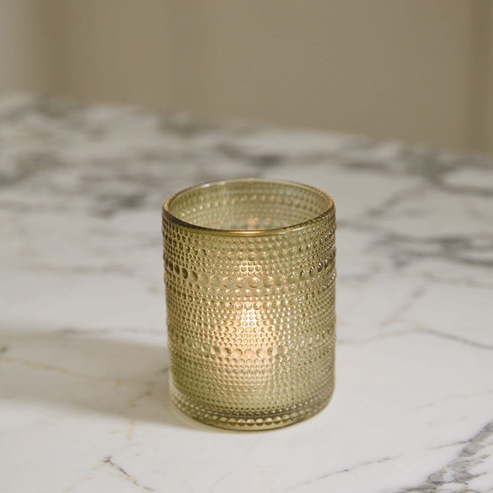 Add some playful charm to your home with the green Bubbled Votive Candle Holder. The machine-made textured dot finish adds a fun touch, while the colored interior creates a beautiful glow. Perfect for candles, this holder lights up any room!