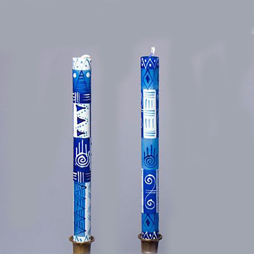 These unique taper candles are hand poured and painted by artisans in South Africa. Only non toxic paints are used in the making of these vibrant taper candles. Each taper pair is truly unique with its own beautiful design and pattern. Sold by the pair, add these taper candles to any table for a pop of color, warmth and light.