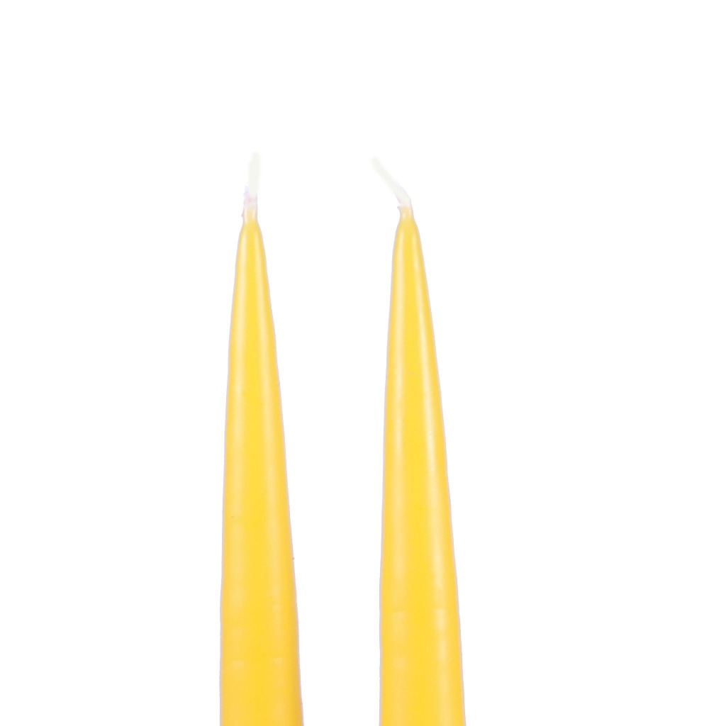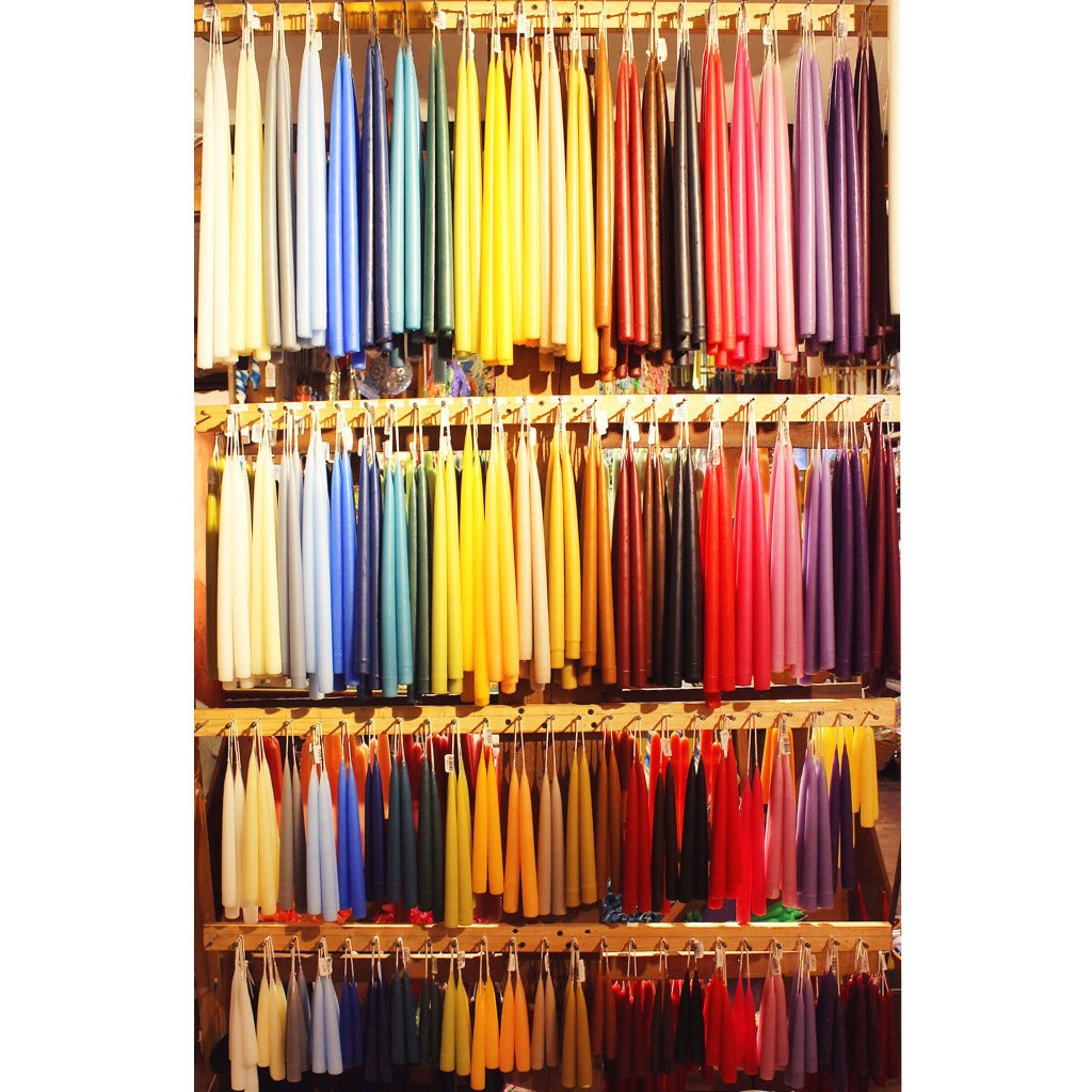 These fine taper candles are hand dipped in traditional techniques. Created with a blend of beeswax and other fine waxes, these taper candles will have a long and clean burn. These traditional taper candles are available in a rainbow of hues, as well as varying lengths.