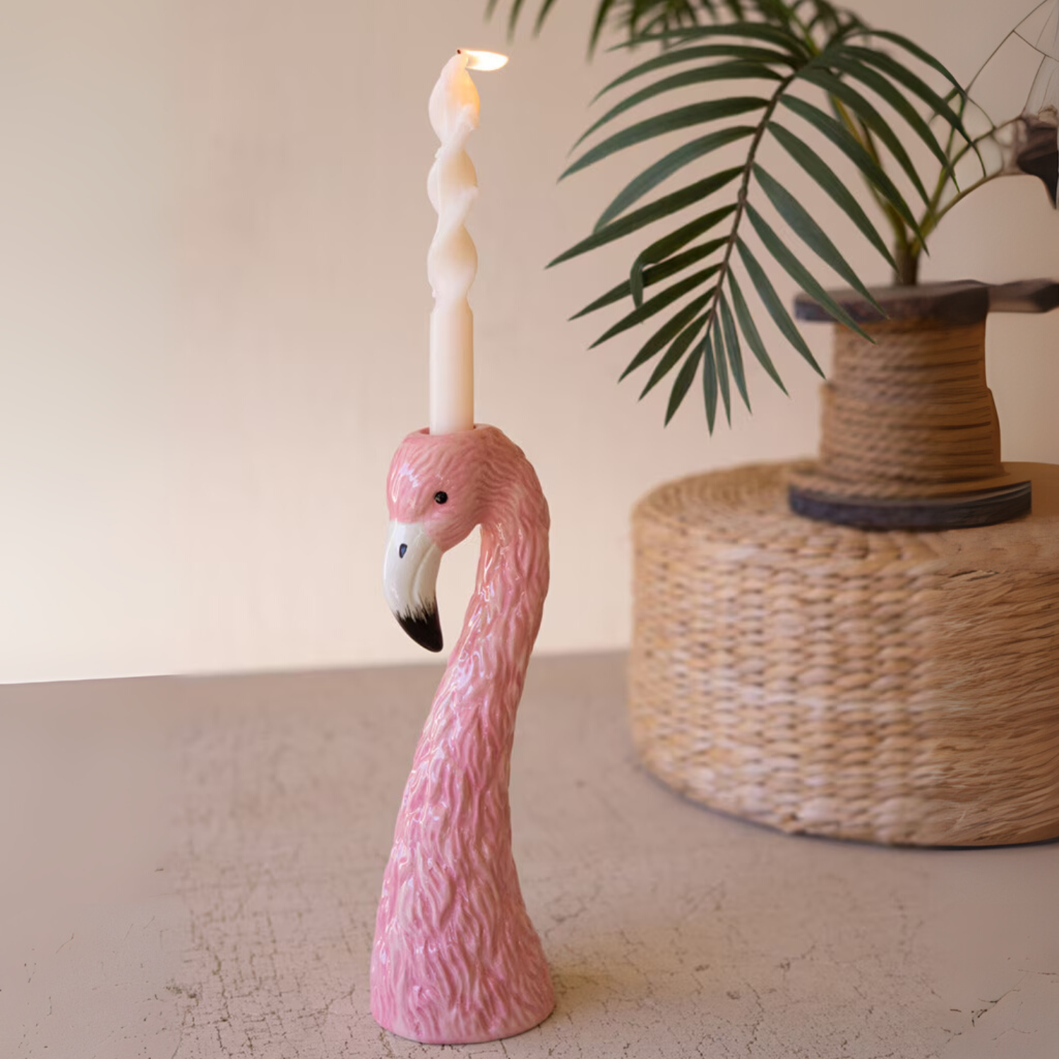 Add a pop of playful charm to your space with this pink ceramic flamingo taper candle holder. Its whimsical design brightens any room while securely holding your taper candles. Perfect for bringing a cheerful touch to your décor or gifting to someone who loves fun and unique accents.
