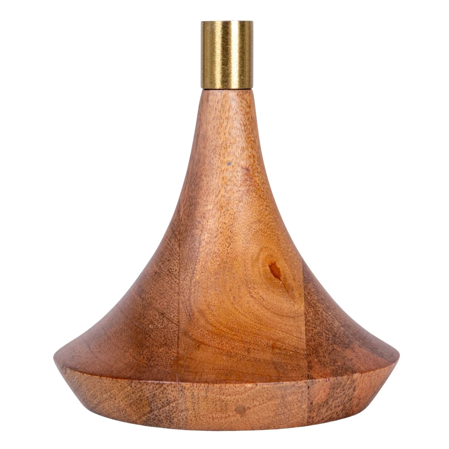 Elevate your décor with this elegantly shaped mango wood taper candle holder. Designed with smooth curves and a rich natural wood grain, this piece brings warmth and sophistication to any space. The subtle brass-toned metal insert securely holds a ½-inch taper candle, adding a refined contrast to the organic beauty of the mango wood. Perfect for dining tables, mantels, or accent displays, this candle holder blends seamlessly with modern, rustic, and bohemian aesthetics.