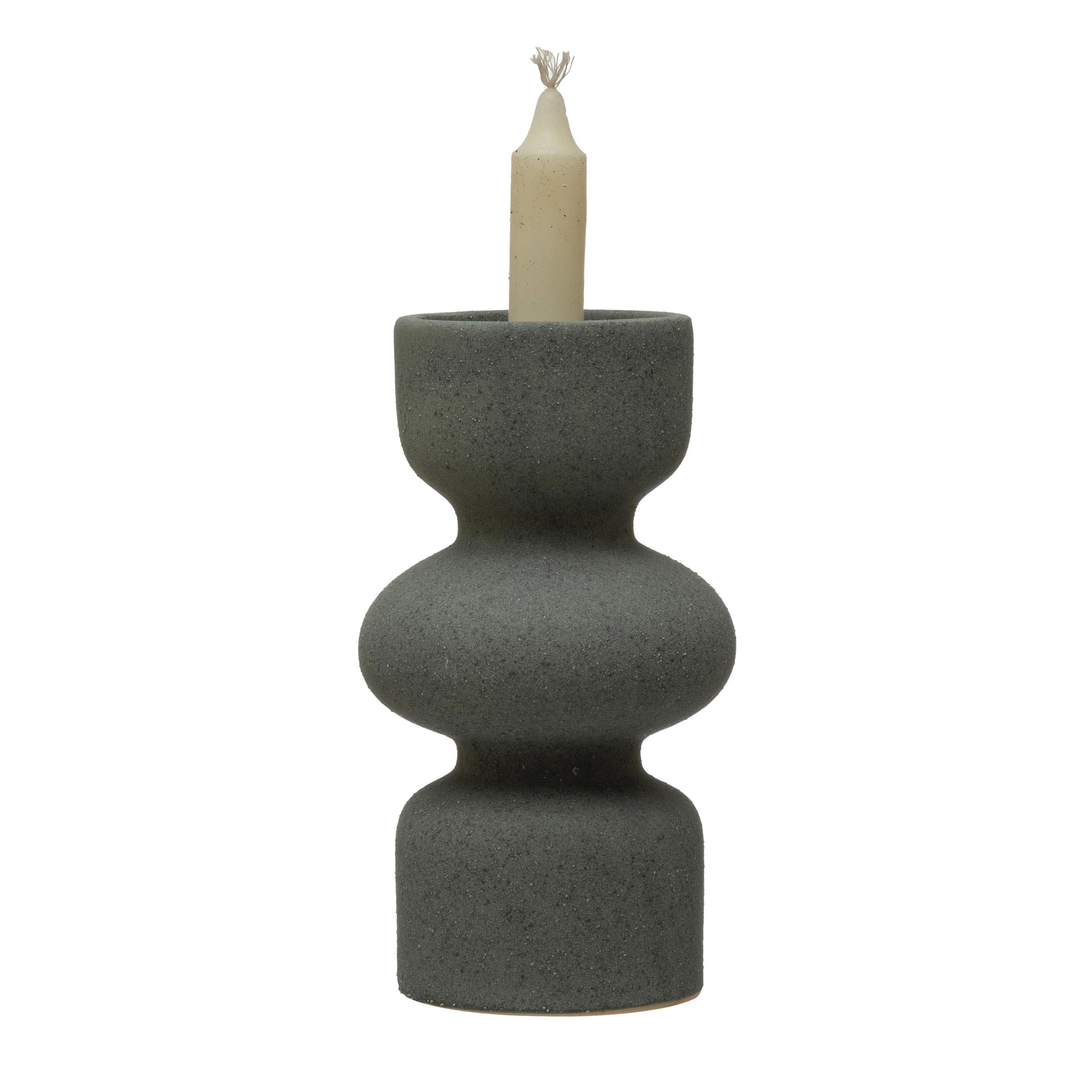 This bold and eclectic stoneware tealight or taper candle holder will be a uniquely stylish addition to many trendy design themes. A modish, contemporary accent that will be an eye-catching piece in any room in your home or office.