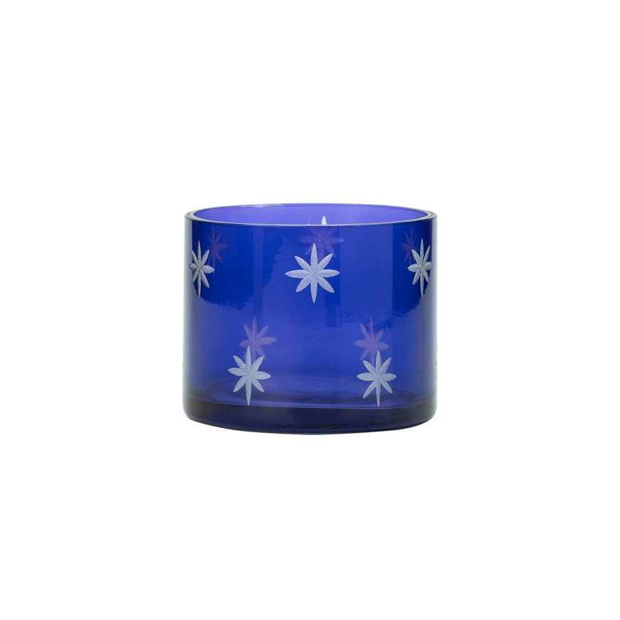 Blue Glass Snow Star Tea Light Candle Holder
