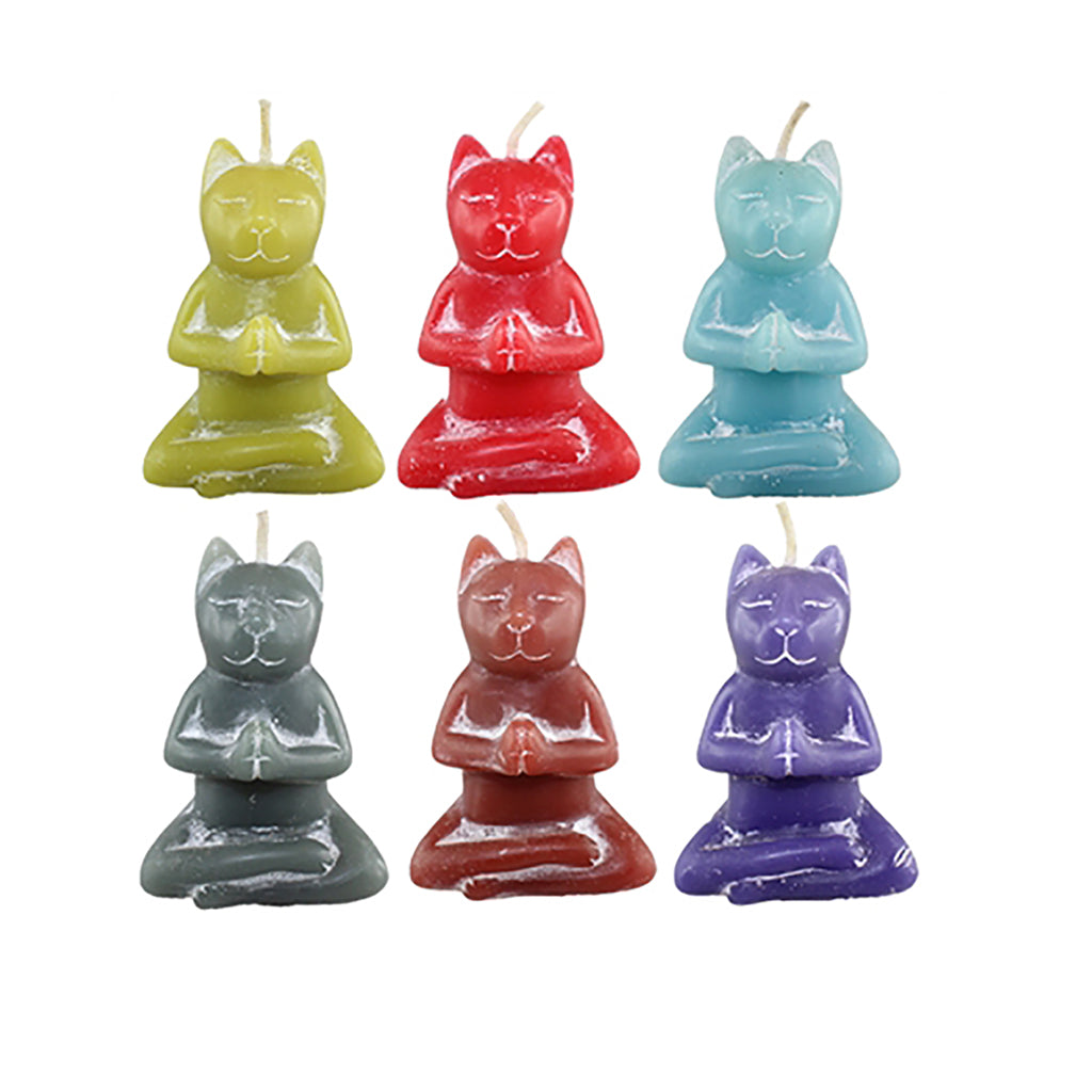 Bring peace, relaxation, light and warmth into your home decor with these adorable meditation cat candles. These crossed legged cats come in vibrant colors that will look wonderful as they glow bright.