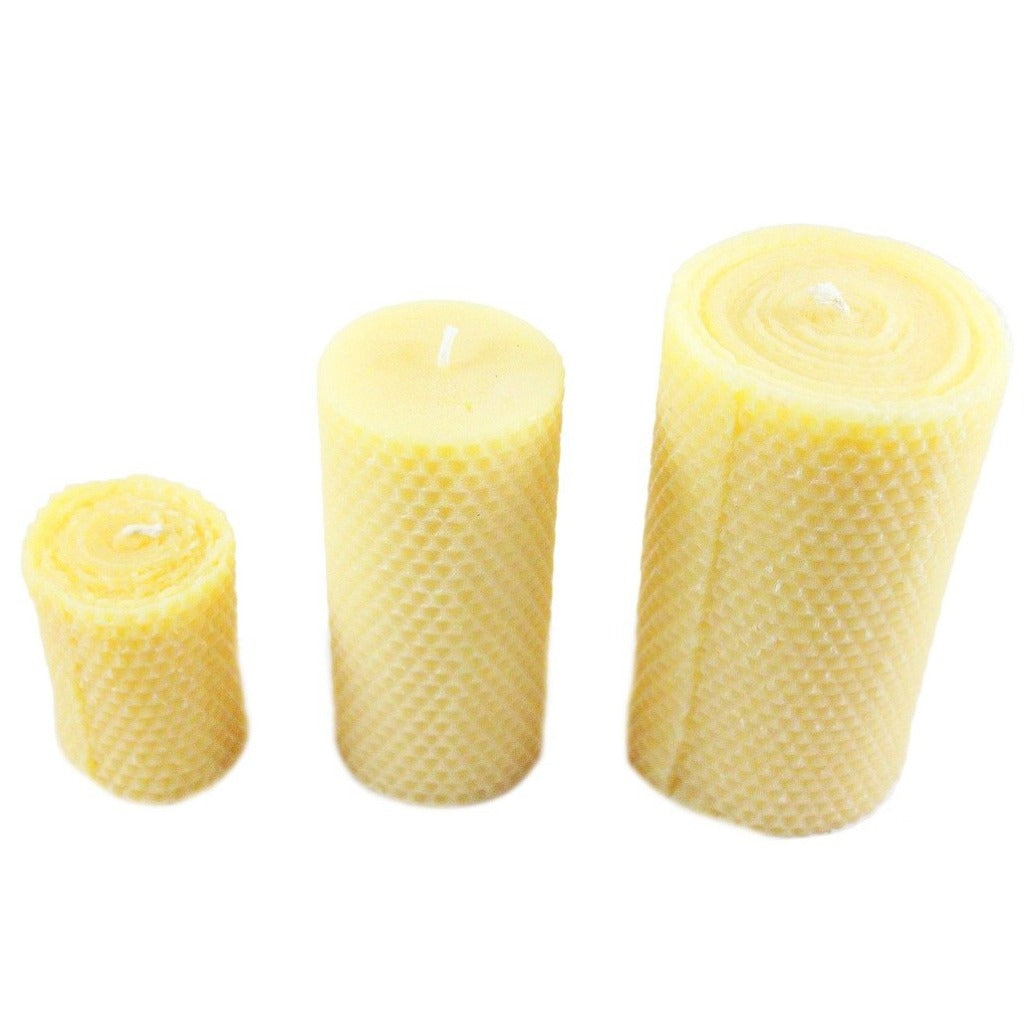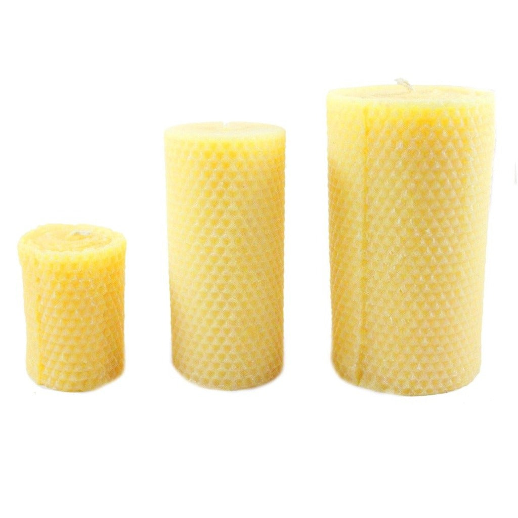 These pure beeswax honeycomb pillar candles have an actual honeycomb appearance that is delightful to the eye. These beeswax honeycomb pillar candles will burn long, clean and pure. Available in three sizes, these purifying pillar candles will delight all with warmth and light for hours.