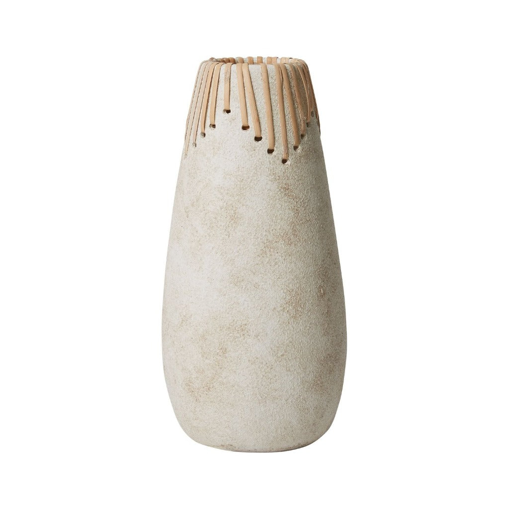 Fill your home with unique yet classic style with the Alaya Vase. This timeless piece features an ivory glaze, simple silhouette, and natural hand-woven design. With a modern twist on ancient pottery, the Alaya Vase is not just a vase, but a piece of art.