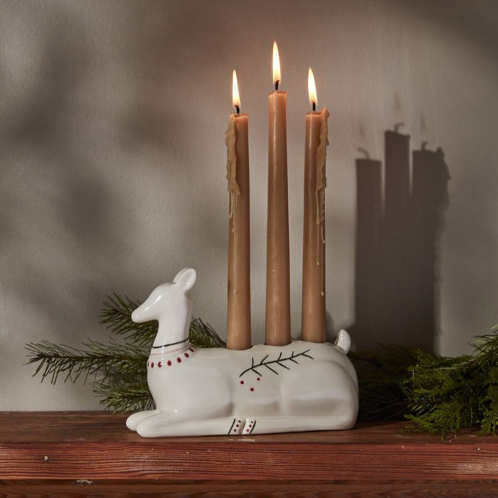 Bring the outdoors indoors with the Alise The Deer Candle Holder! This beautiful ceramic deer looks great in any room and can hold up to three taper candles so you can light up the night with style!