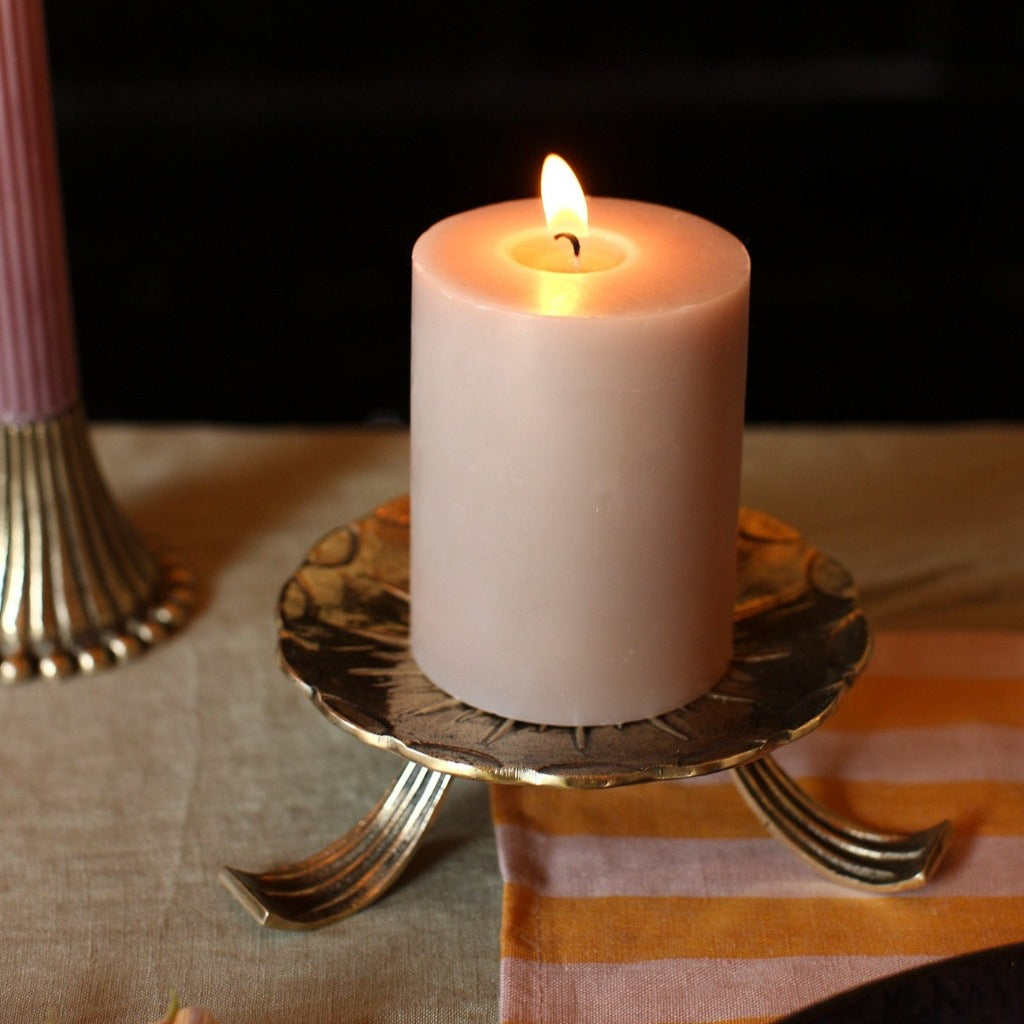 The Leya Candle Holder is perfect to light up your life. Made from 100% brass, this pillar candle holder is the perfect piece to display your favorite pillar candles.
