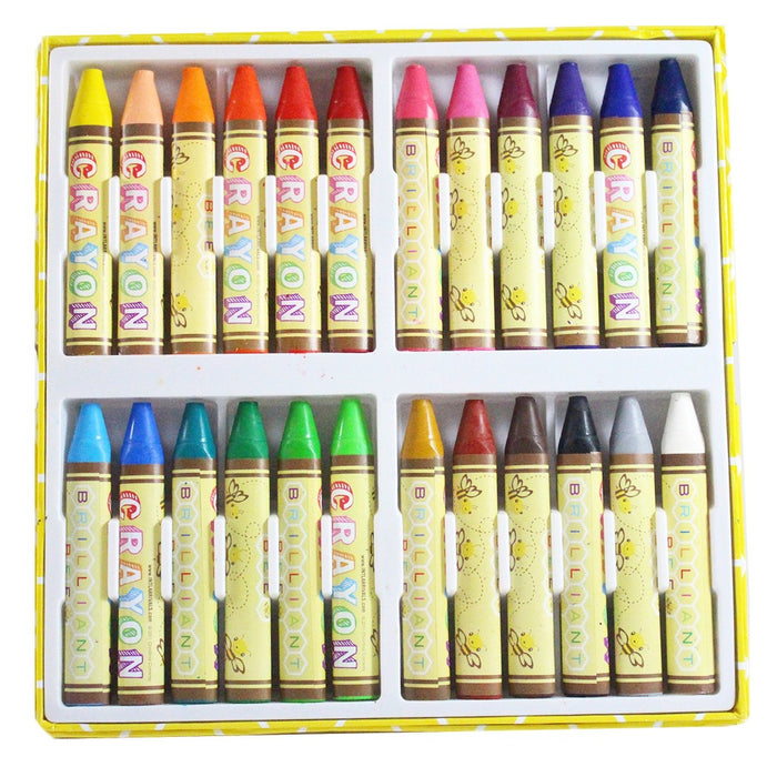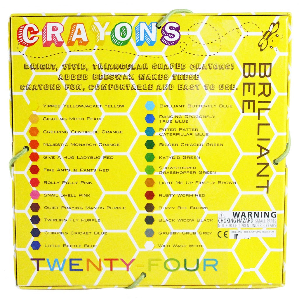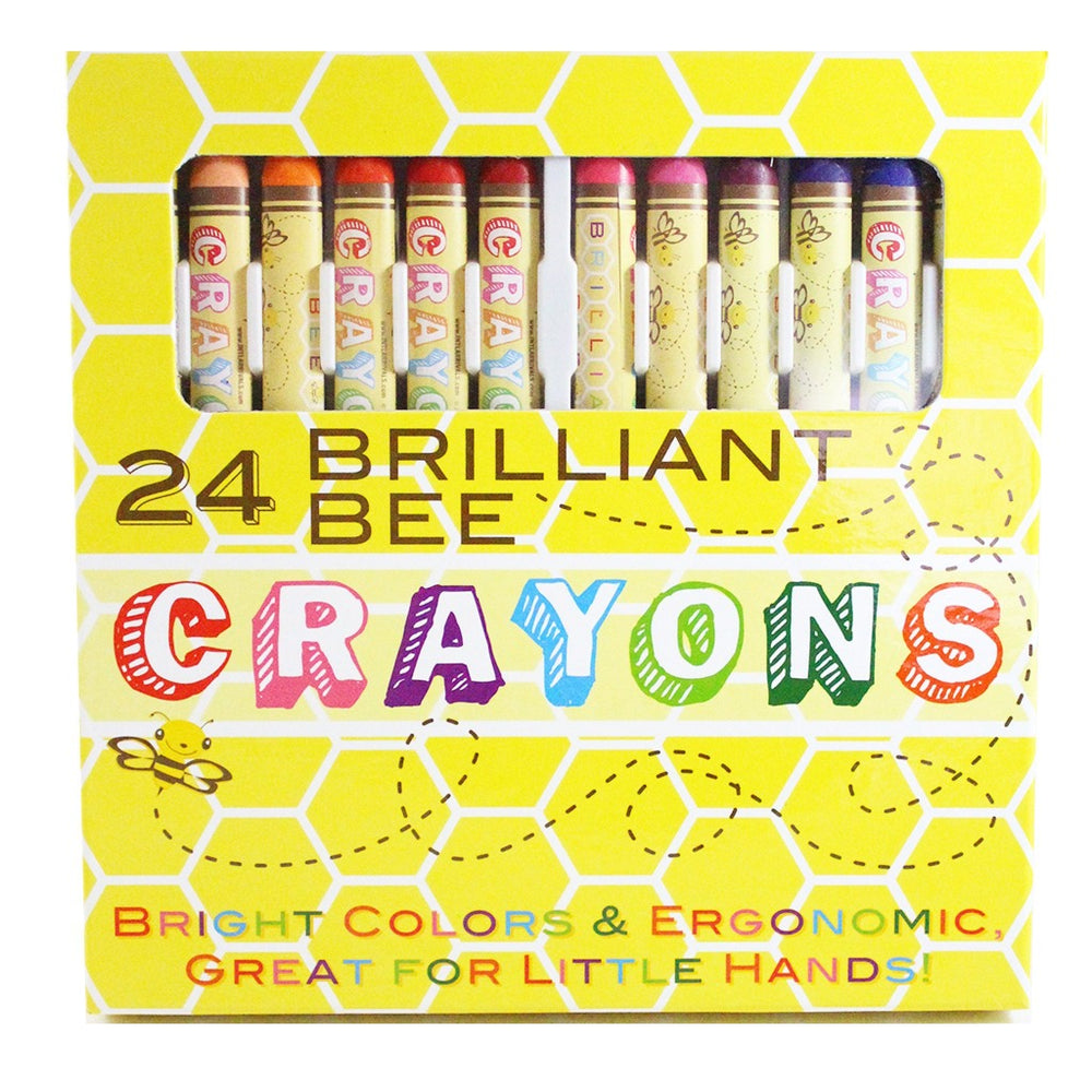 Let your kids color with these natural and colorful brilliant bee crayons. Each box comes with 24 individual easy to grip triangular shapes crayons. Each color is given a fun creative name such as, "Snail Shell Pink," and "Twirling Fly Purple." Give this set of natural rich creamy crayons as a bright and fun gift.