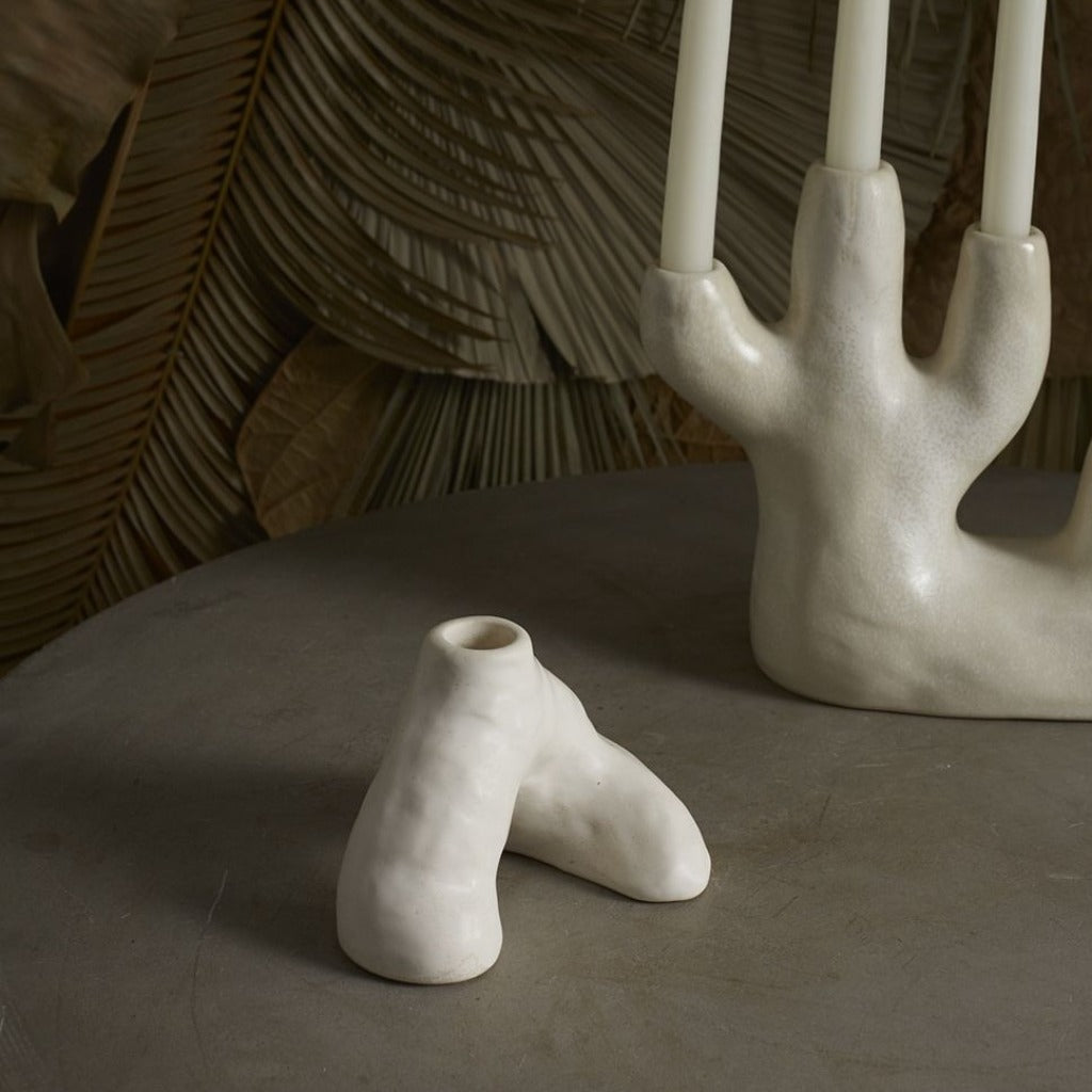 Beautiful ceramic modern taper candle holder. This unique piece holds six standard sized taper candles, two standard sized taper candles, or a single standard size tapers.