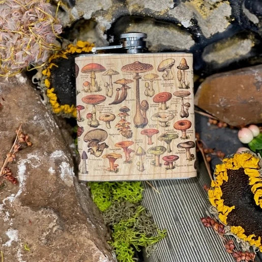 Quench your thirst with style and charm with these Decorative 6 Ounce Flasks. Made of eco-friendly wood from Michigan, each flask features a unique hand-wrapped label. Perfect for a casual picnic or as a timeless gift, this stainless steel flask holds 6oz and adds a touch of elegance to any occasion. (Cheers to that!)