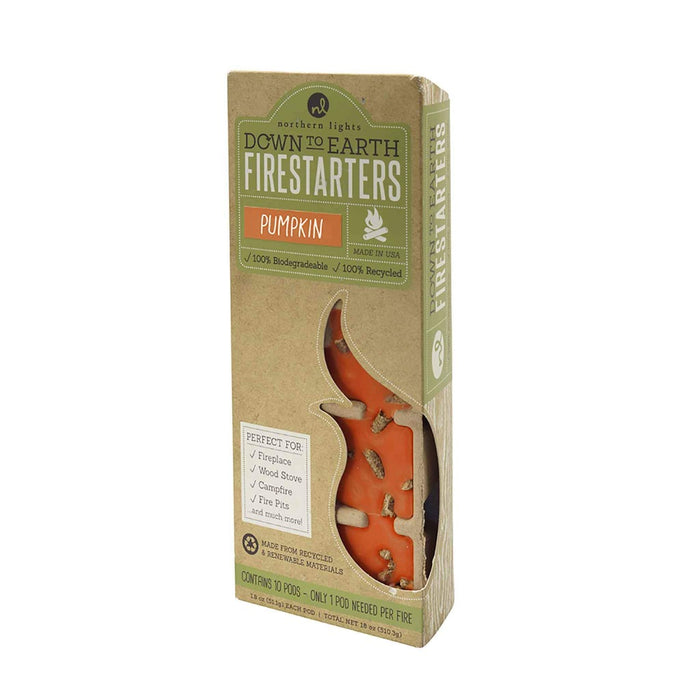 These fire starters are not your traditional pieces of wood. Each one is infused with a unique scent that will not only give your fire a kick start, it will fill your home with a wonderful aroma. Just simply place one of the ten pods under your logs and light it. Perfect for wood stoves, camp fires, fire places and more!
