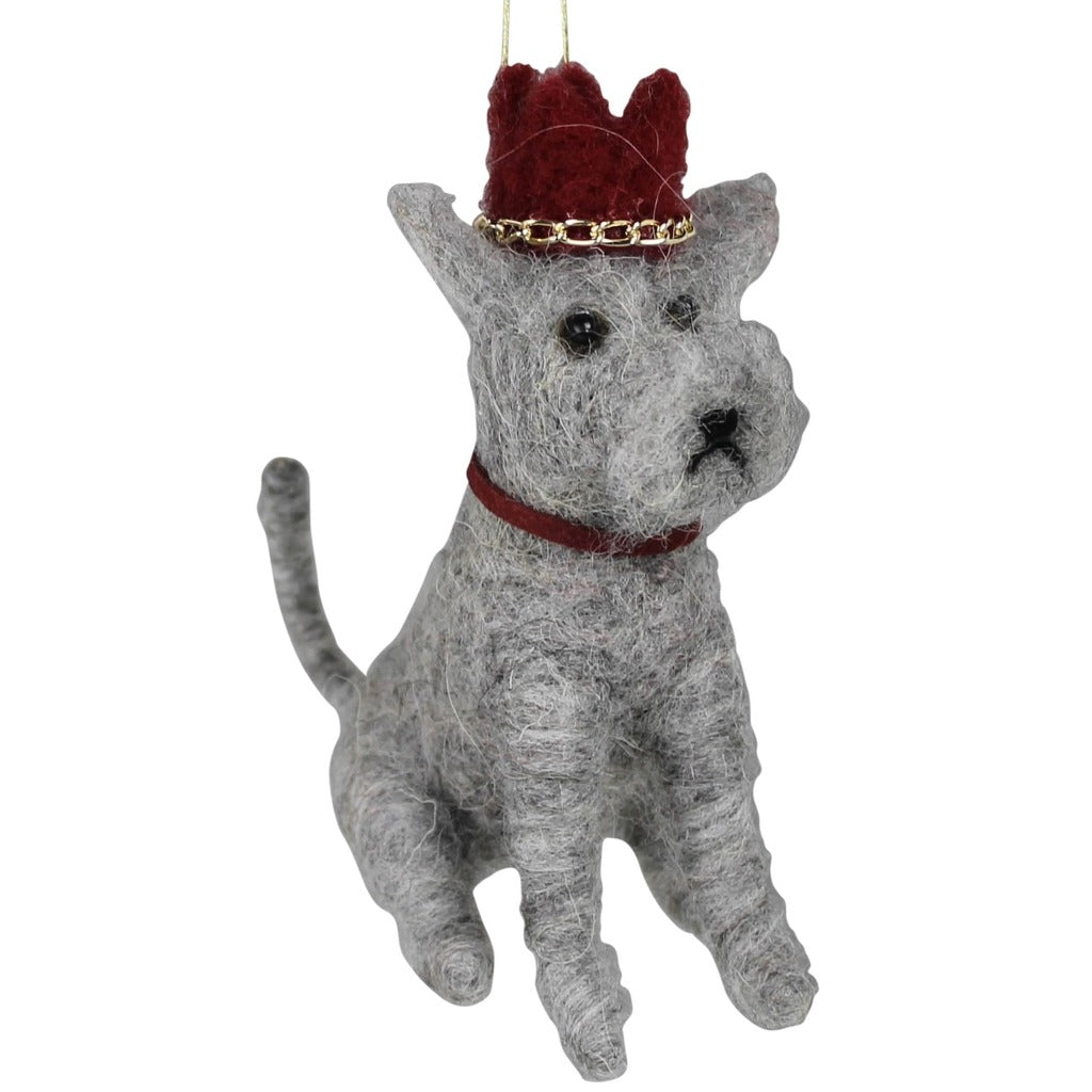 This Felt Schnauzer Ornament is paw-fectly fit for a king (or queen)! Crafted from felt and decorated with a regal crown, it makes a sweet addition to any home's holiday decorations.