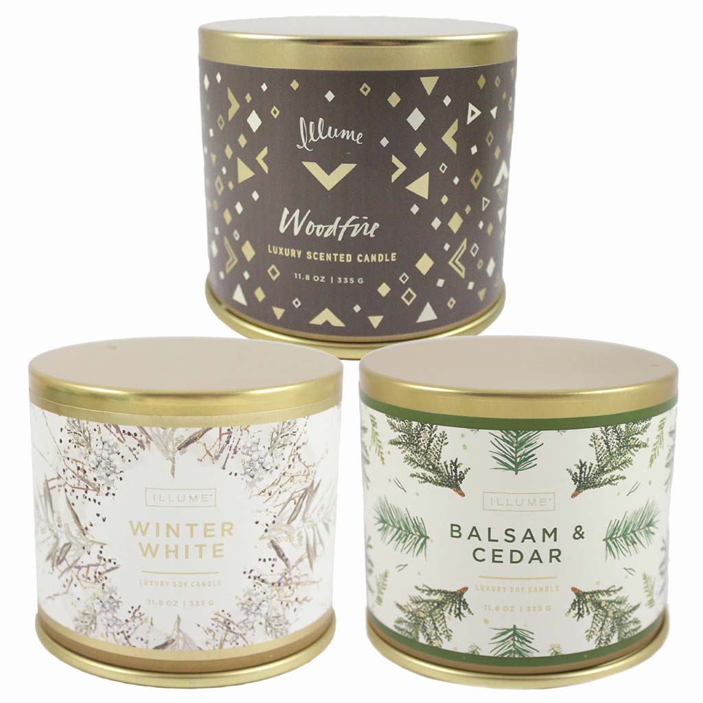 Give the gift of cozy winter fragrances with this bundle of 3 essential winter and holiday scents - Balsam & Cedar, Winter White and Woodfire. This soy wax scented jar candle gift bundle includes: