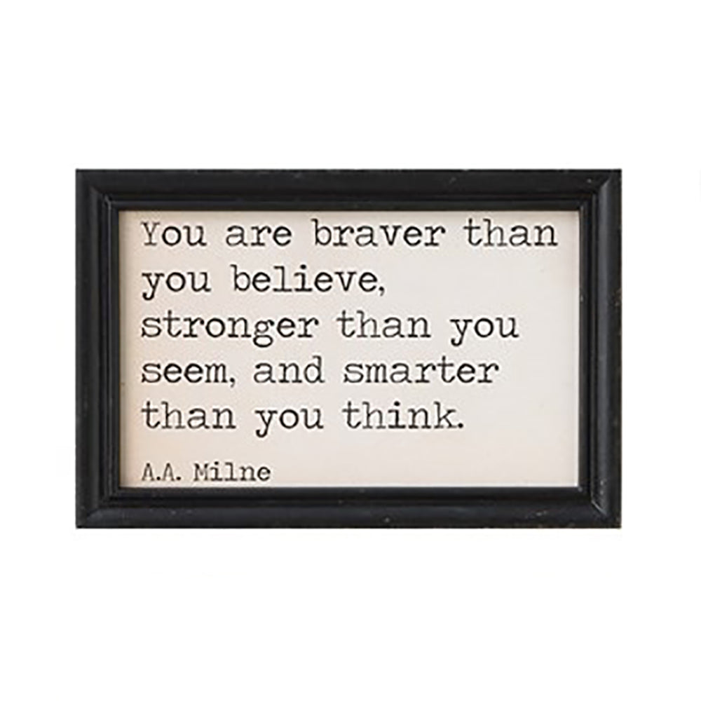 Framed Hanging Wall Quote "You are braver than you believe, stronger than you seem, and smarter than you think" A.A. Milne