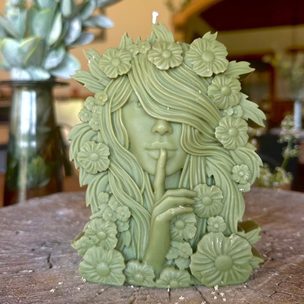 Illuminate your inner goddess with our beautiful Goddess Candle. Featuring a beautiful woman's face surrounded by delicate flowers, this candle will add a touch of feminine energy to any space. Light it up and embrace your inner goddess.