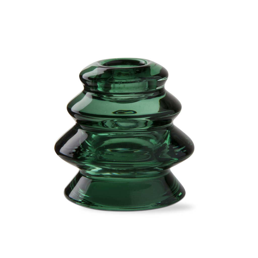 Green Glass Tree Taper Candle Holder