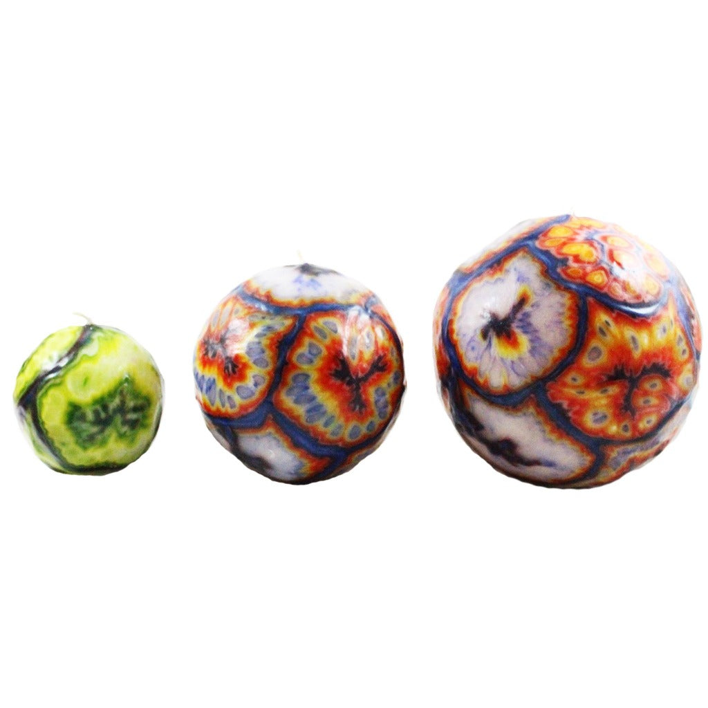 Each one of these unique handmade veneer ball candles is designed with a colorful swirl pattern similar to funky tie dye styles. Available in a variety sizes, these ball candles are a perfect pop of color, light and warmth. Great as a gift for any occasion.