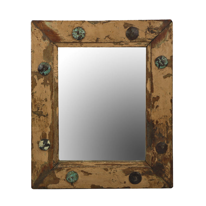 Crafted from reclaimed wood with an age-worn finish, the Nailhead Mirror pops with character.