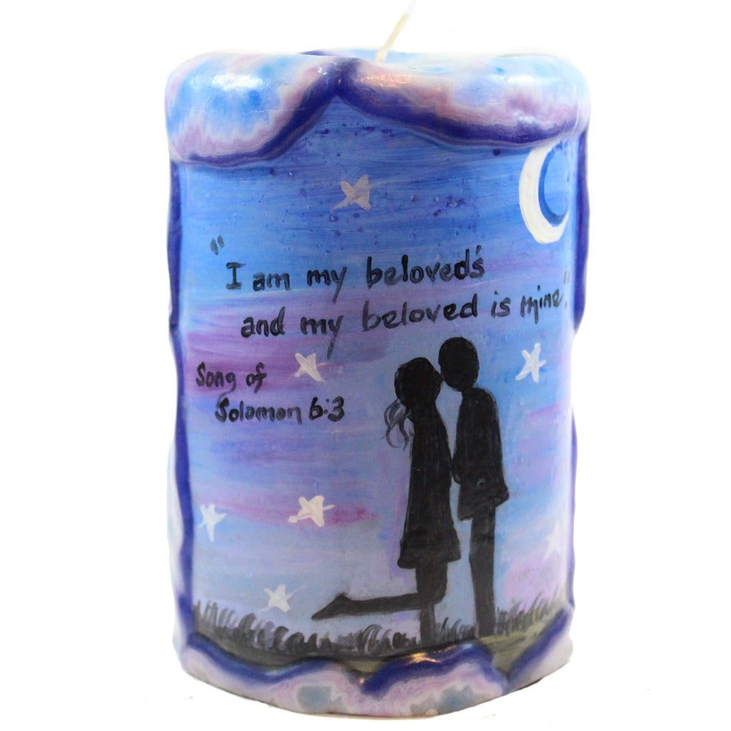 Painted Silhouette Quote Pillar Candle - "I am my beloved's and my beloved is mine." -Solomon 6:3