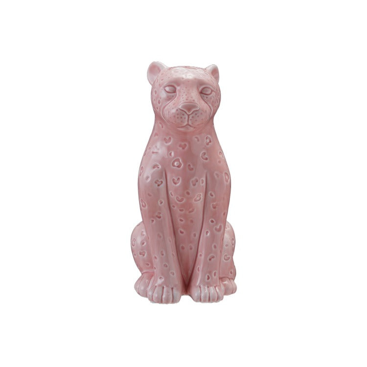 Pink Stoneware Leopard Lamp