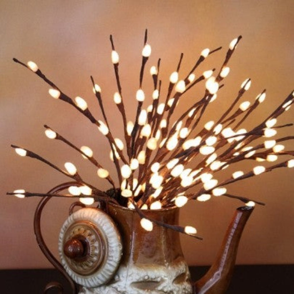 Add an enchanting woodland glow to any bedroom, book self, reading nook or living room with these pussy willow branch LED lights. Each bendable, movable branch is topped with small life like pussy willows that glow amber when turned on.