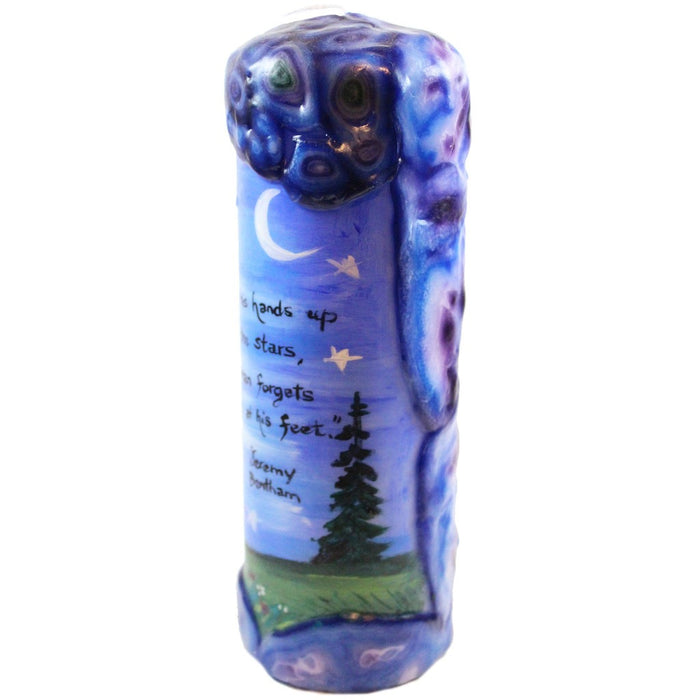 Quote Pillar Candle - "Stretching his hands up to reach the stars, too often man forgets the flowers at his feet" Jeremy Bentham
