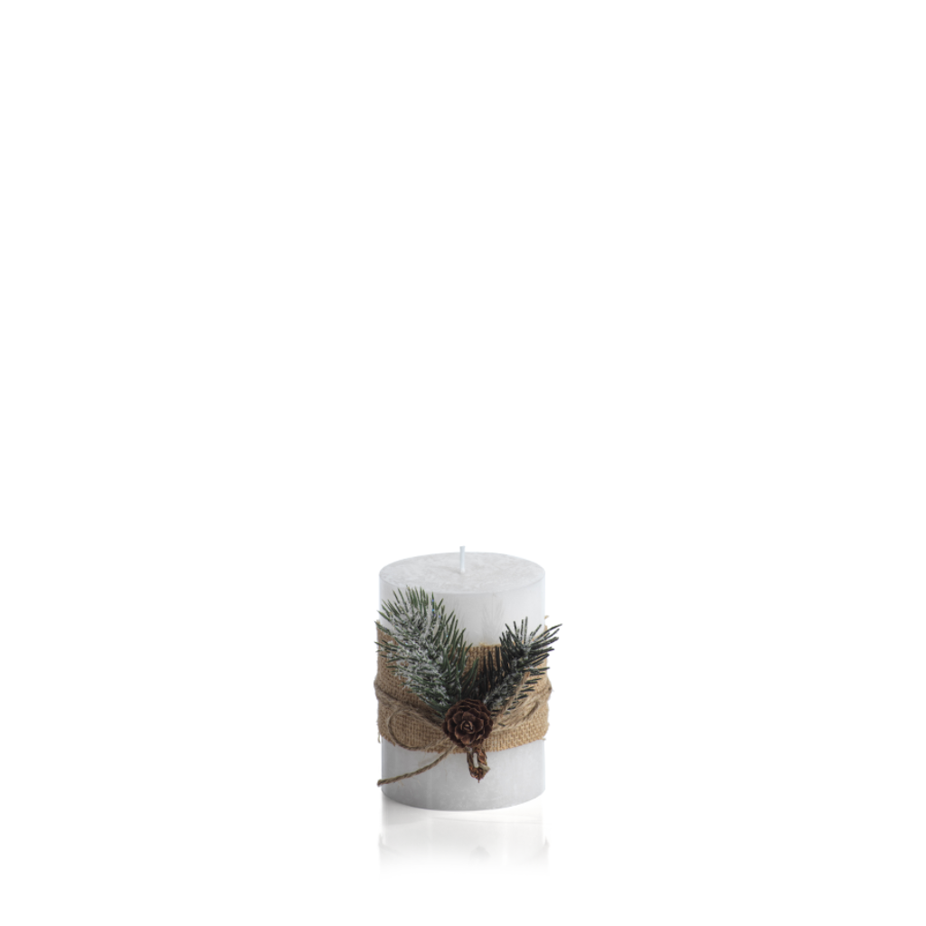 Enhance your home this holiday season with this wonderful Siberian fir scented pillar candle collection. These white pillar candles come beautifully decorated and have a rich scent of Siberian fir. Available in multiple sizes. Candles are sold separately.