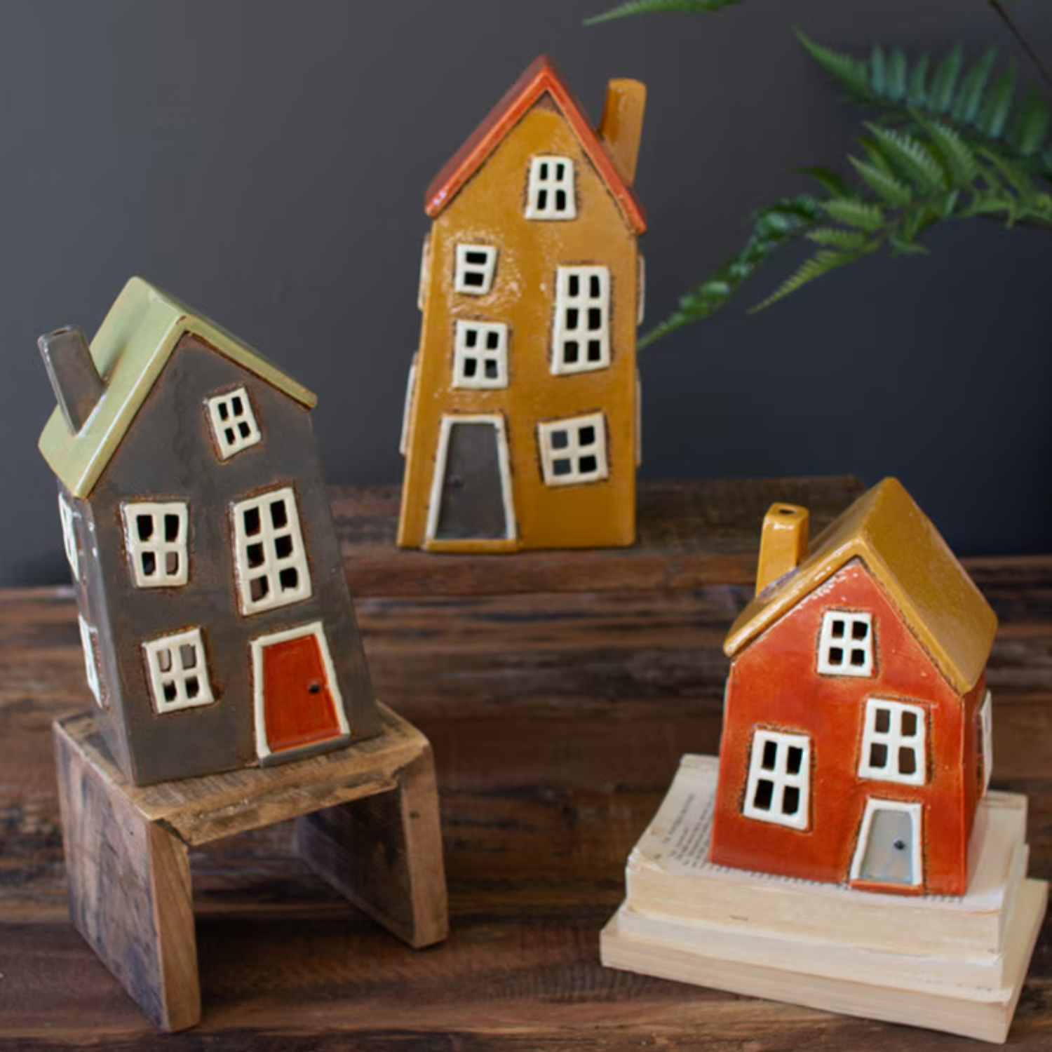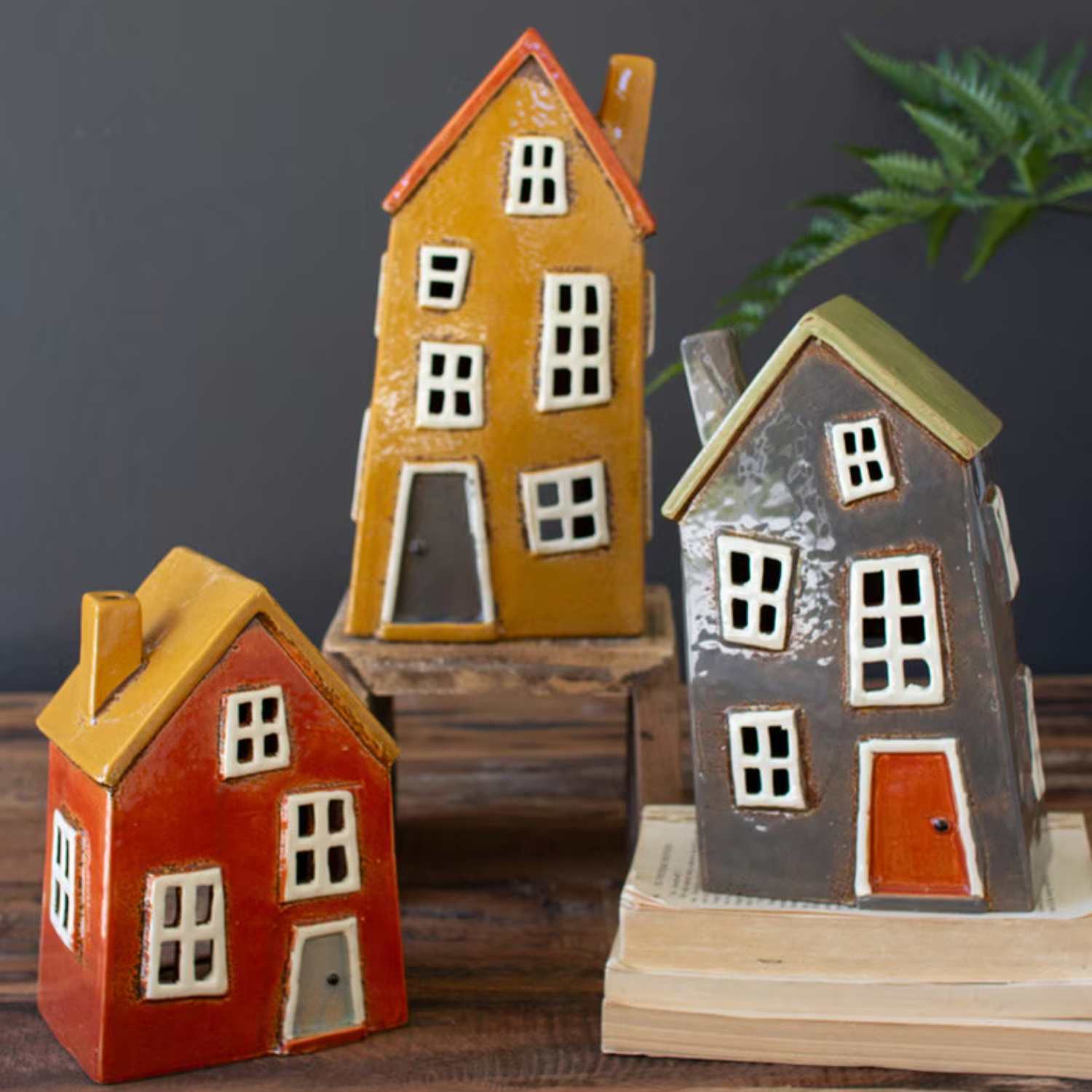 Add a playful touch to your décor with this Wonky Ceramic House Tea Light Holder. Available in green, red, and yellow, each house features a charmingly uneven design and comes in three different heights, perfect for creating lively holiday villages or brightening your space all year round. Sold individually, these whimsical tea light holders easily mix, match, and spread warmth wherever you place them.